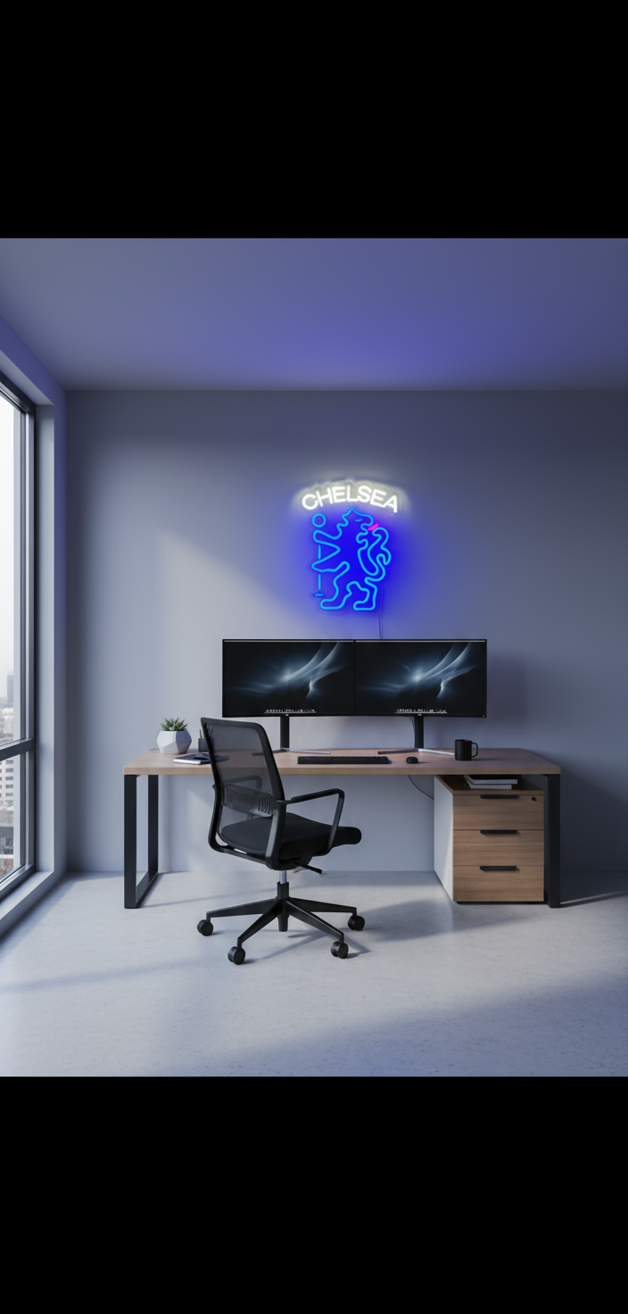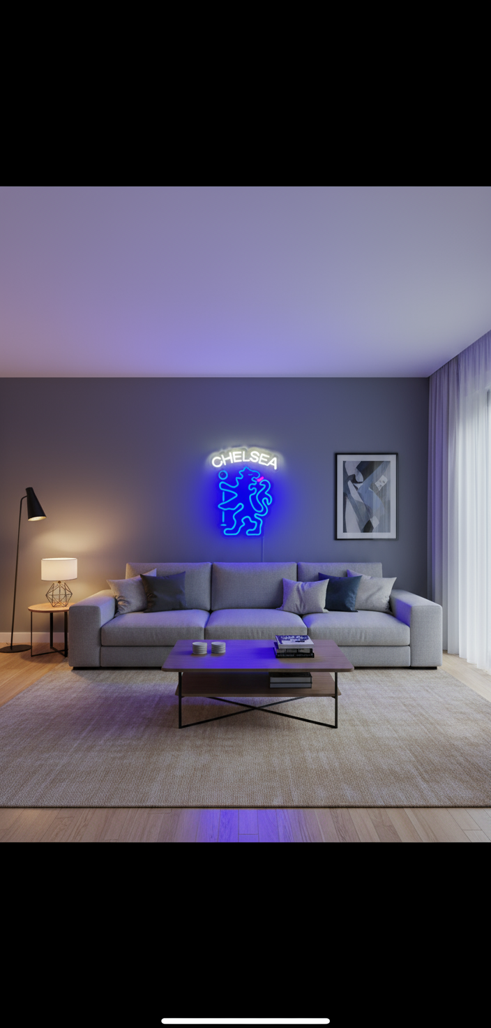 The NeonSports Chelsea Neon Sign was inspired by the iconic Lion in Chelsea Football (soccer) Club logo/badge, designed in LED neon, making it a unique and eye-catching piece for any London Chelsea fan. The sign is designed in the brand’s signature blue colour and is crafted from silicone and acrylic materials. With a dimmable feature and a remote control this unit is suitable for display in a variety of settings. Designed in Latvia, custom made for NeonSportsShop, this modern piece is a must-have for Chelsea supporters looking to add a touch of team spirit to their space. Bringing sports logos to life with Neon Sports – add a vibrant touch to Your home, game room, man cave or even your office.
